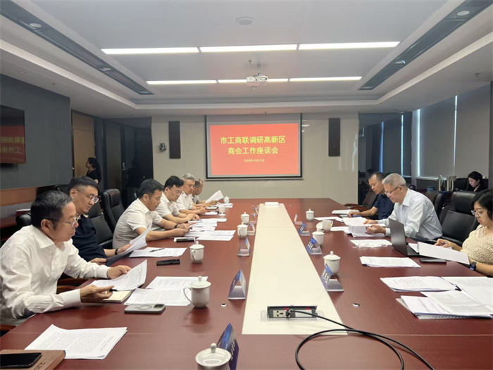 区政协副主席、工商联主席谢明华,区工委统战部副部长、工商联党组书记瞿峰,市工商联相关部室负责人及高新区各板块商会负责人出席座谈。